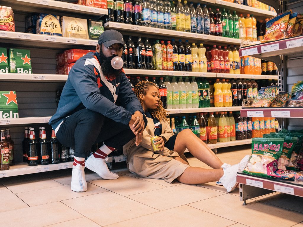 C’est entre deux paquets de chips et une boîte de conserve, que nous nous sommes posés dans l’épicerie de mon beau frère le temps d’un shooting.